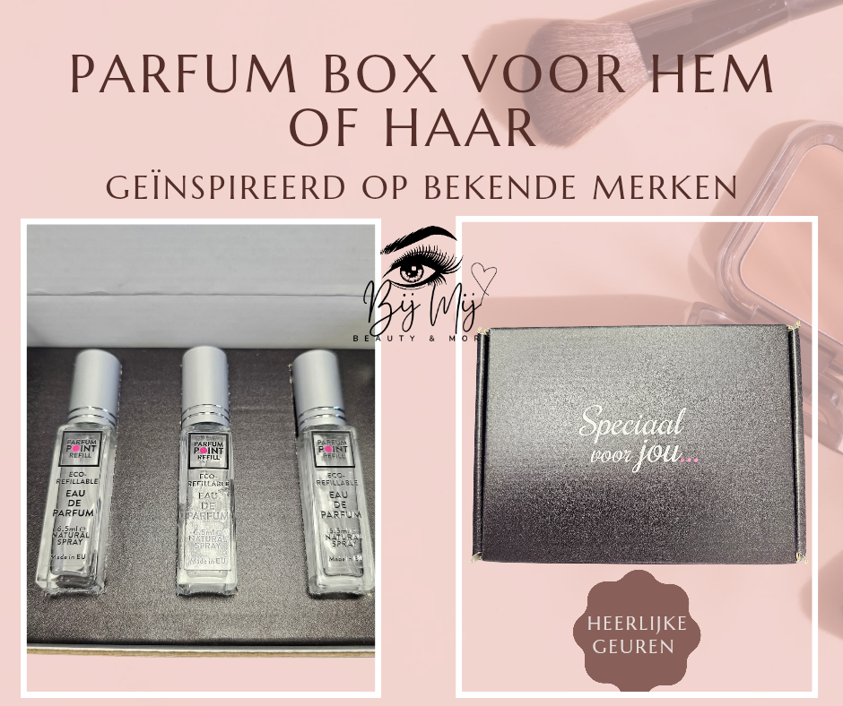 Parfum box met 3 heerlijke geuren. Geïnspireerd op bekende merken.